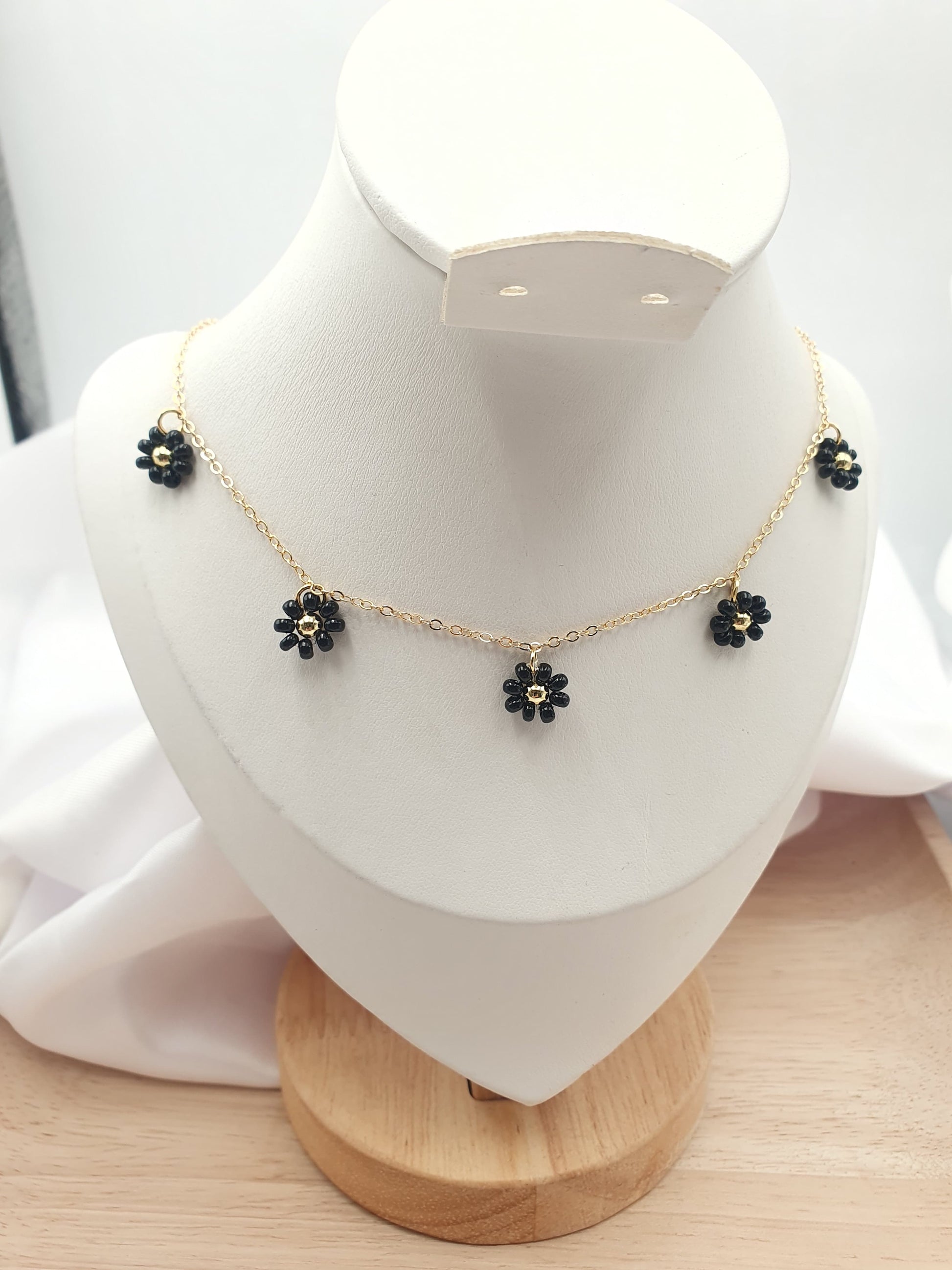 Cadena Rodio Flores Negras