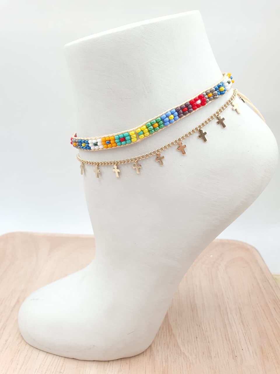 Tobilelra tejida en telar y rodio con cruces